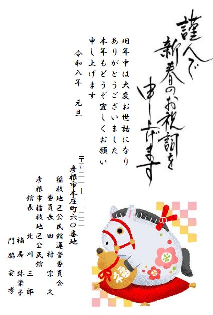【館長の部屋 R8年1月1日】 1月(睦月) 「一年の計は元旦にあり!」 稲枝地区のみなさま 新年明けましておめでとうございます。 新しい年 西暦2026年、令和8年、午年の幕開けです。暑かった昨年と比べ、今年はどのようになるのでしょうか? 年頭にあたり一言。冒頭のことわざについて、お話します。 この由来は、中国の明代の書物「月令広義(げつりょうこうぎ)」のなかに「一日(いちじつ)の計は晨(あした=朝)にあり、一年の計は春(はる=正月)にあり」という一文が記載されています。これは、一日の初めである朝や一年の初めである正月にこそ計画をたてるべきである、という戒めです。また、先の言葉の後には「一生の計は勤めにあり、一家の計は身にあり」と続きます。全体では「初頭に計画を立てることで日々の充実度が決まり、勤勉に働くことで一生が決まり、健康維持によって一家の行く末が決まる」との意味合いになります。このなかの「一日の計」「一年の計」「一生の計」「一家の計」を合わせて「四計」といい、よき人生の設計に欠かせない大切な計画とされているものです。今年は、四計で、効率よく円滑に過ごしたいものです。(出来るかなあ??) さて、寒さの本番はこれからです。雪道には注意しましょう!インフルエンザが流行しています。みなさん、免疫力を上げてイフルエンザにかからない様にしましょう。今年も、明るく楽しく前向きにそして笑顔で・・・。寒さに負けず、ご自愛ください・・・!! 今回は、これにて・・・。SEE YOU AGAIN!! (ことわざの内容は、インターネット内「進路指導部通信」より引用しました)