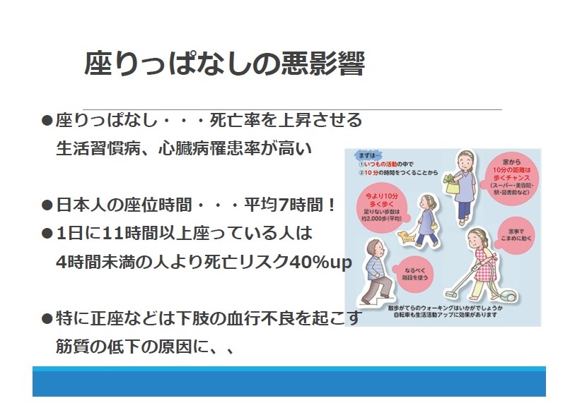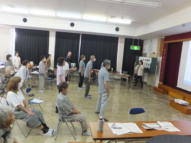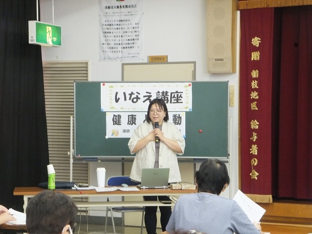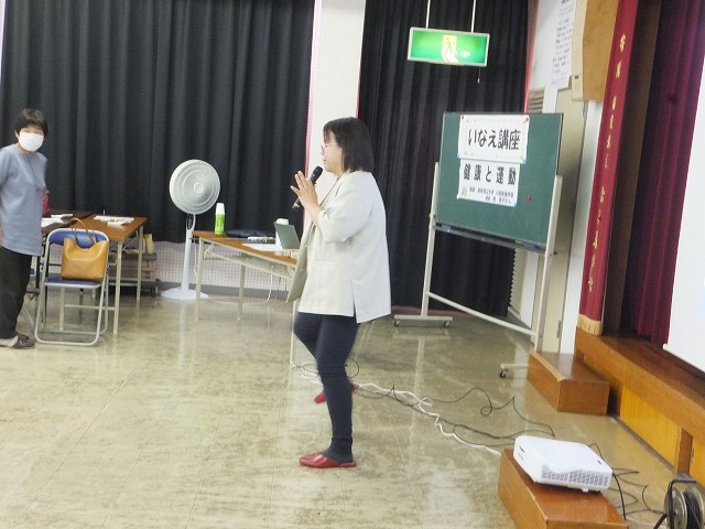 第5回 いなえ講座「健康と運動」令和7年9月19日(金) 講師は滋賀県立大学 関 恵子さん 画面を見ながら予防体操をします。 フレイル(虚弱)が進んで寝たきり状態にならないように運動をしましょう。 TOP