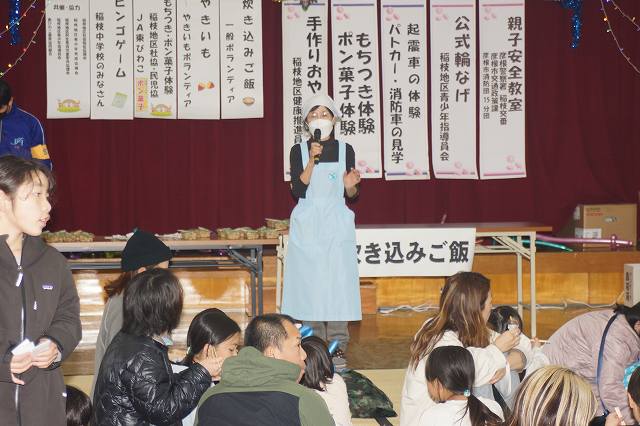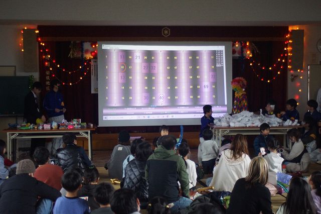 ビンゴ大会は稲枝中学校ボランティアのみなさんで進行します。 なにをもらおうかな!☺