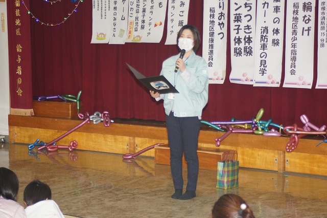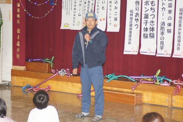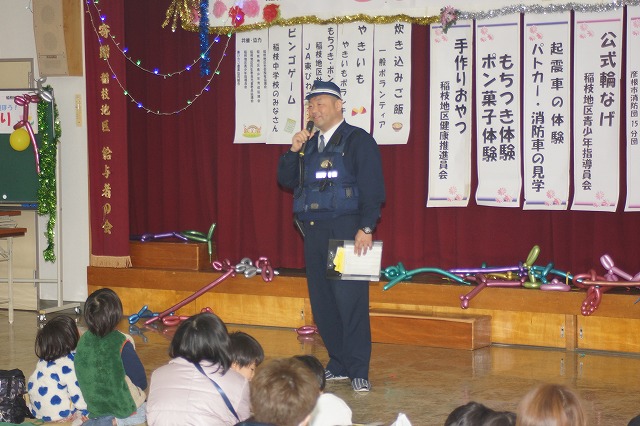 稲枝交番さんによる交通安全・生活安全のお話し 消防15分団さんから火の用心等のお話し。