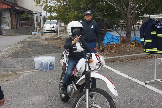 こどもの消防服を着て消防車・消防バイクの乗車体験