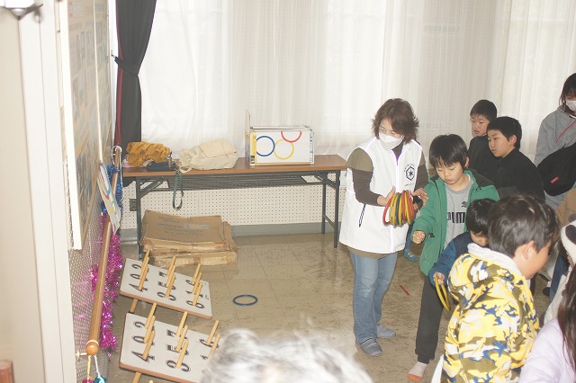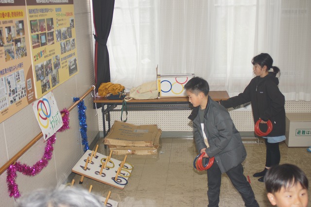 青少年指導員による 公式輪投げで遊びます。