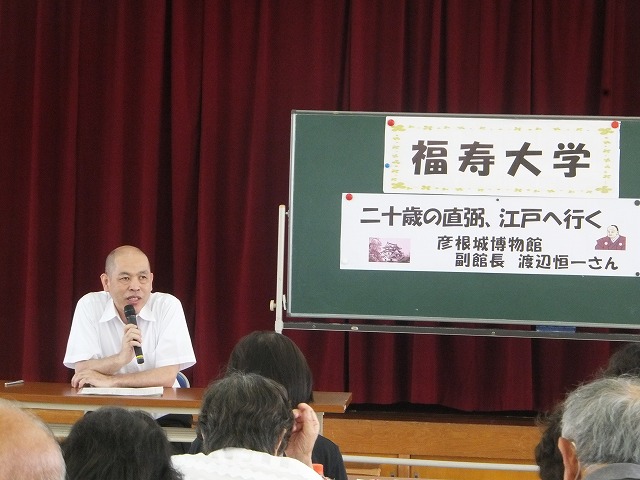 第3回 福寿大学「二十歳の直弼、江戸へ行く」 「露分衣」つゆわけころも 井伊直弼が書いた旅日記 講師は 彦根城博物館 副館長 渡辺 恒一さん 井伊家十三代当主井伊直弼(1815~1860)井伊直中の十四男として
