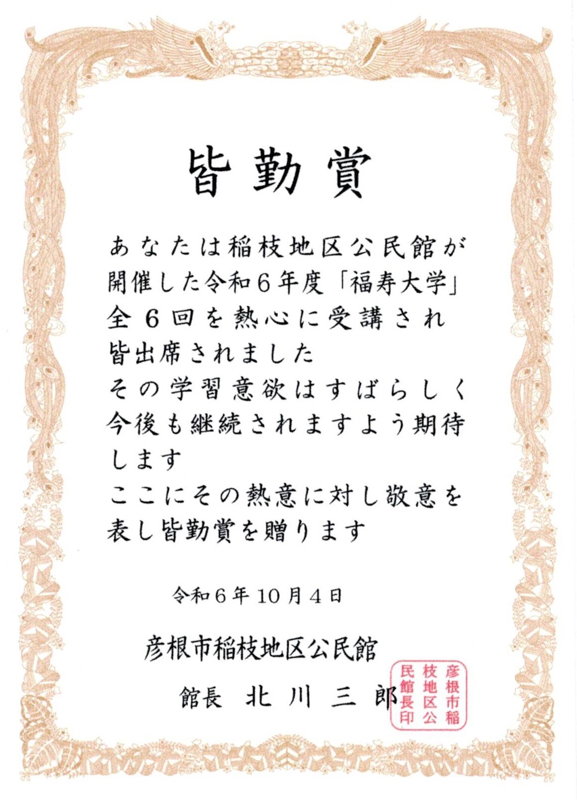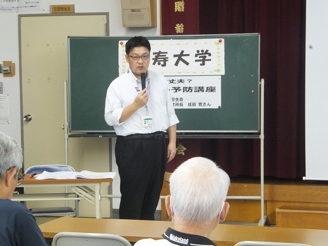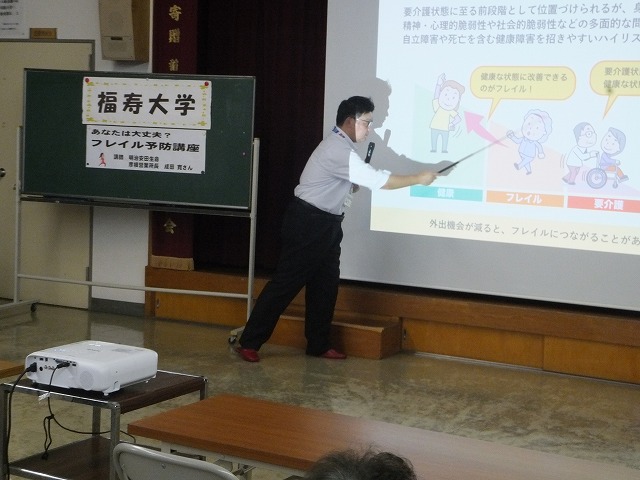 第6回 福寿大学「健康」あなたは大丈夫?フレイル予防講座 令和6年10月4日(金)令和6年度 福寿大学閉講式 滋賀県の平均寿命は全国第2位しかし健康寿命は第46位だそうです。