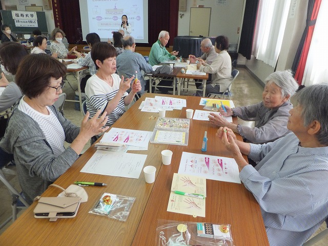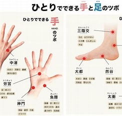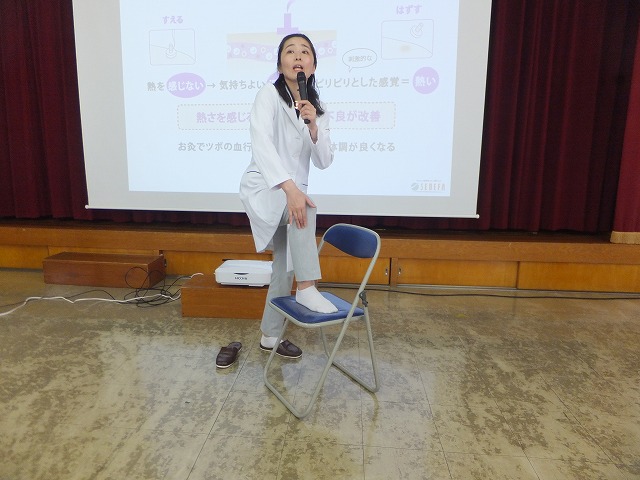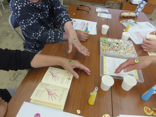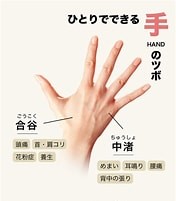 第2回 福寿大学「健康」 お灸を楽しむセネファ(株)さん 親指と人さし指の骨がまじわったところから、やや人さし指よりのへこみがポイント