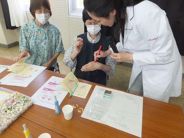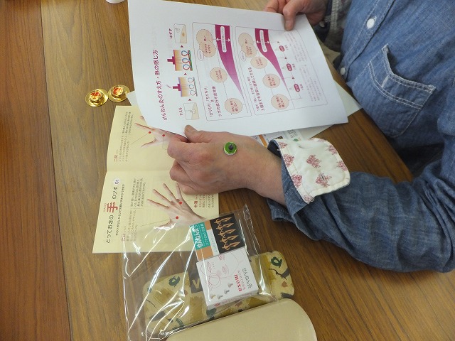 先生に正しいお灸ポイントにしるしを付けて貰います。