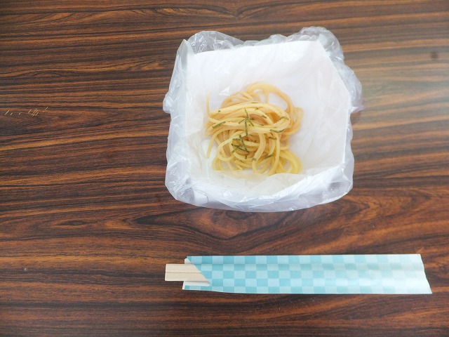 紙食器が何度も使用できるように、ポリ袋を被せます。