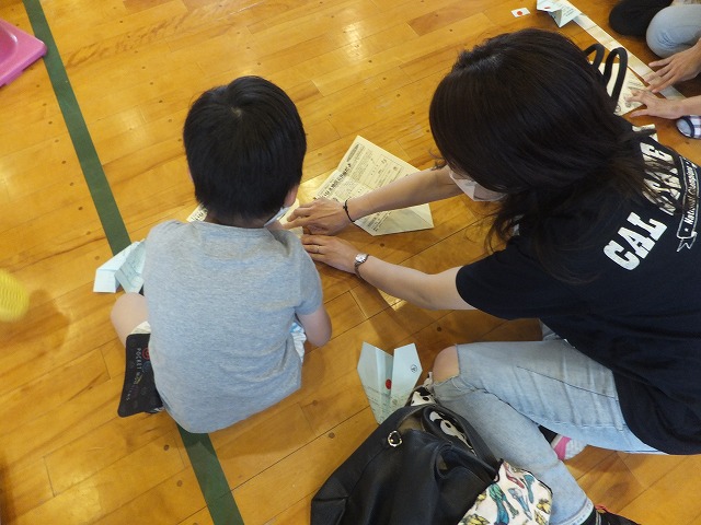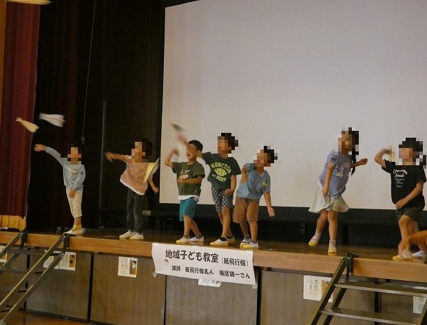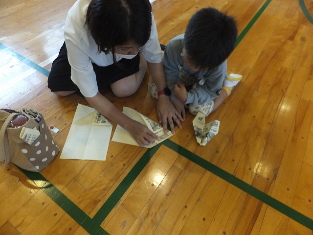 さあいよいよ自分が作った紙ひこう機を飛ばします。