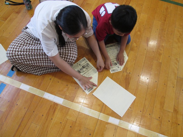 さあいよいよ自分が作った紙ひこう機を飛ばします。