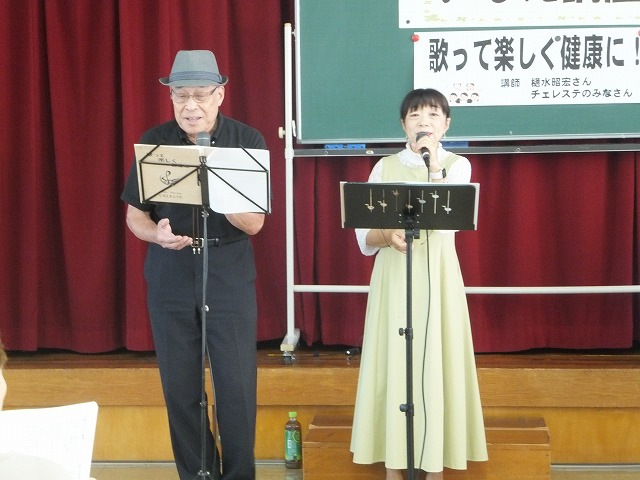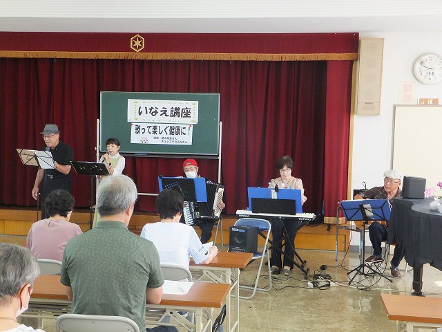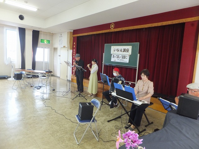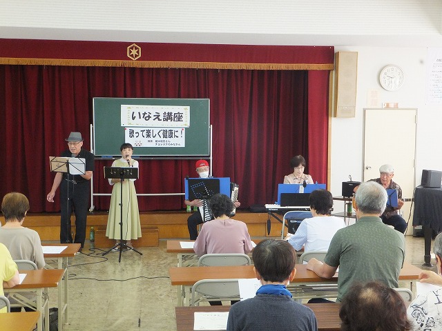 第4回 いなえ講座「ミニコンサート 歌って元気に!健康に!」 講師は音楽療法士♫樋水昭宏さんとCELESTE(チェレステの皆さん) みんなで歌い手足を動かして楽しく運動しました。(^^♪