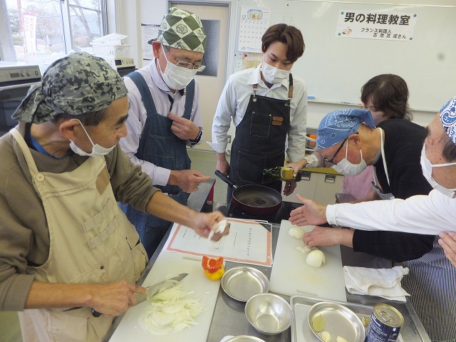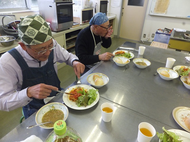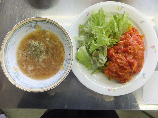*オニオングラタンスープ *鶏肉のバスク風 *先生自作のアップルケーキ